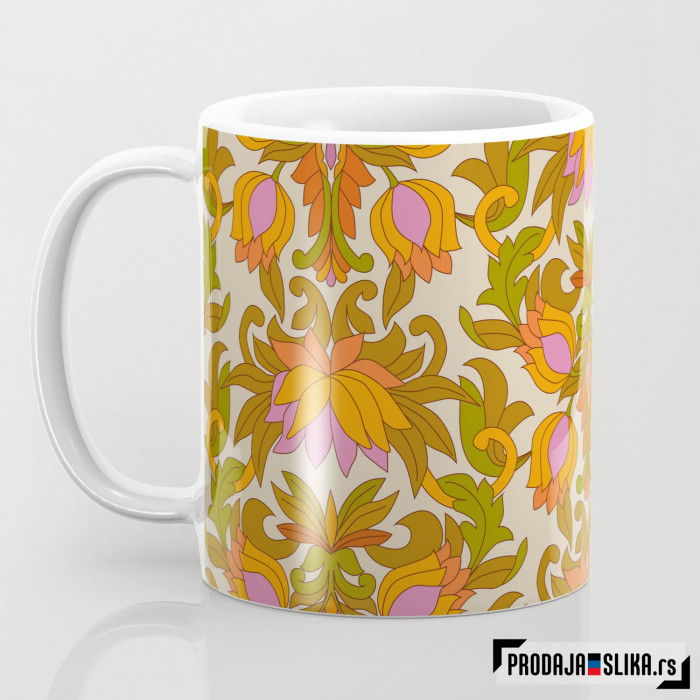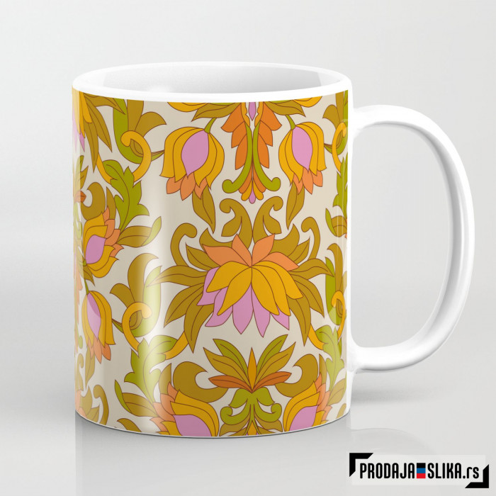 1960-te Retro cveće - šolja klasičnog oblika zapremine 330ml sa slikom! Obradujte sebe ili dragu osobu, kupite šolju kao rođendanski poklon, poklon za useljenje ili bilo koju priliku.